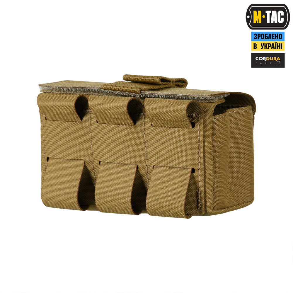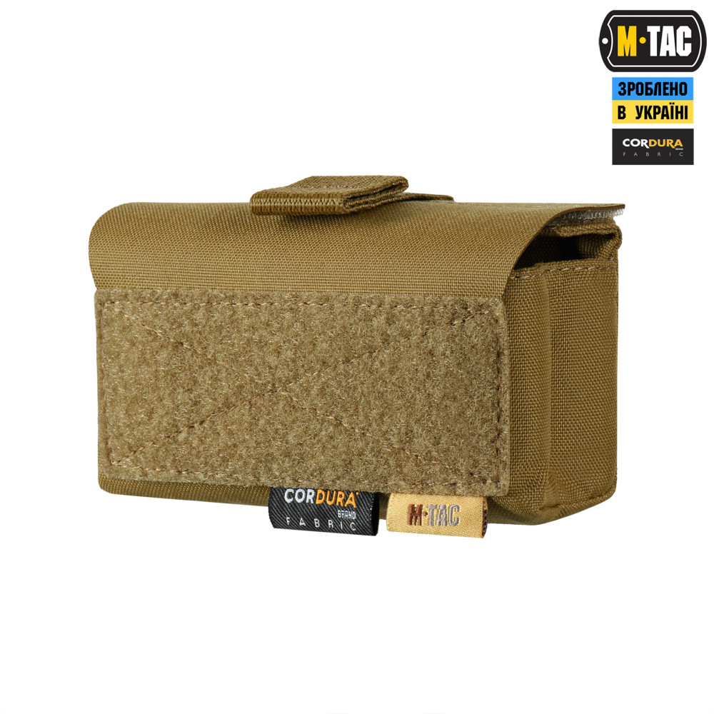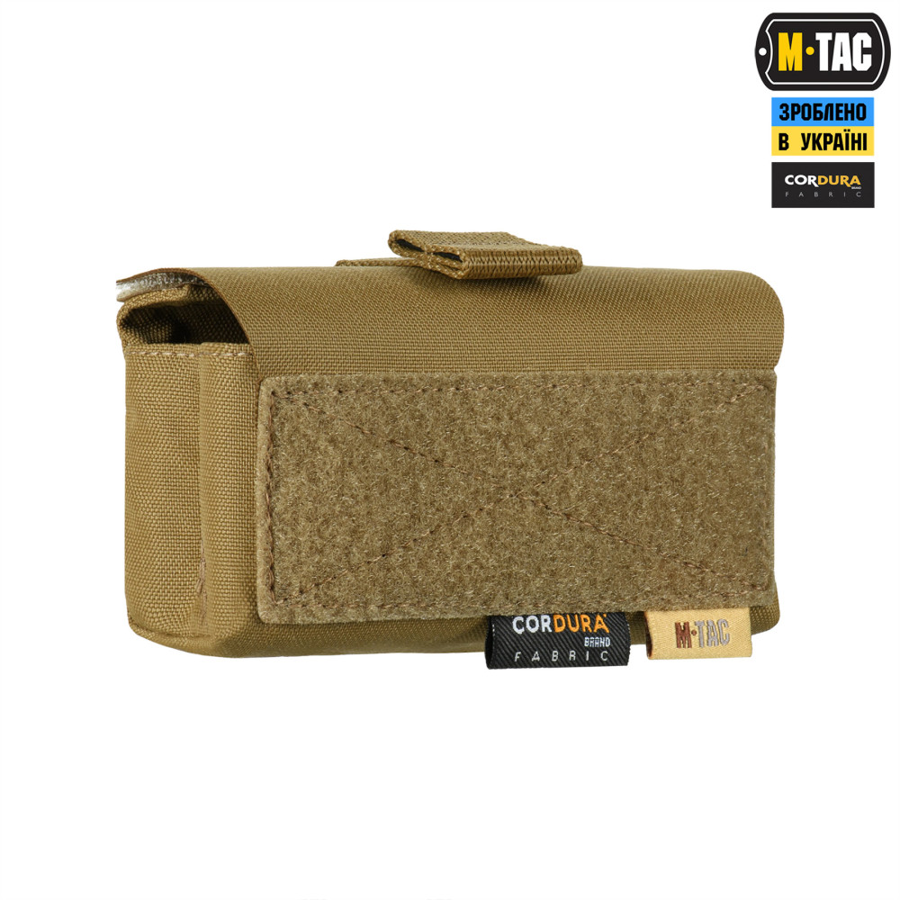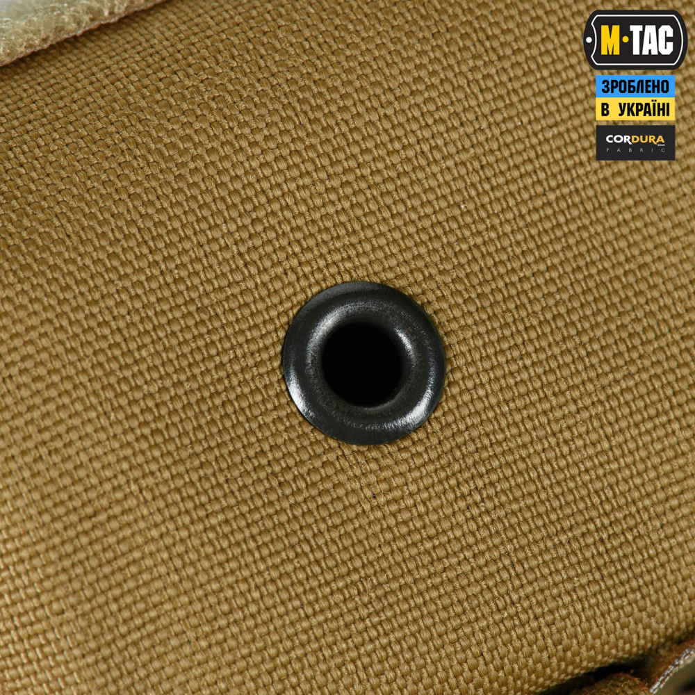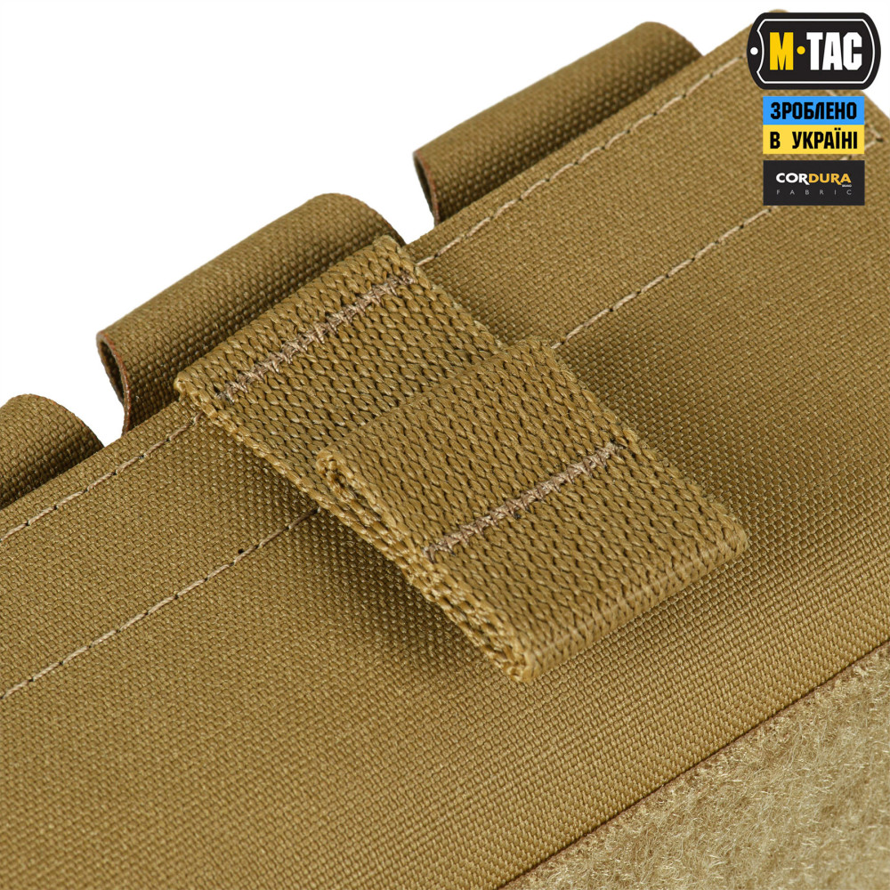 M-Tac підсумок під 12 калібр на 10 набоїв Elite кріпиться до спорядження за допомогою подовженої задньої частини, яка вплітається у MOLLE систему. На передній частині підсумка розташована велкро-панель для кріплення ідентифікаторів та патчів, а знизу – люверси, які запобігають накопиченню пилу/бруду всередині. Для зручності відкривання, хлястик зі стропи додатково посилений пластиком.