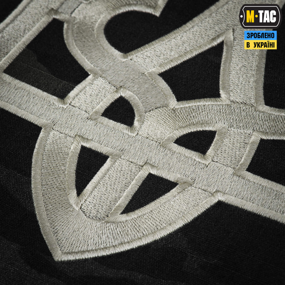 Прапор виконаний з якісного американського матеріалу Nyco Extreme в оригінальних патернах Multicam та Multicam Black. Зображення герба виконано машинною вишивкою та для кращої зносостійкості ущільнено дублюючим матеріалом.
