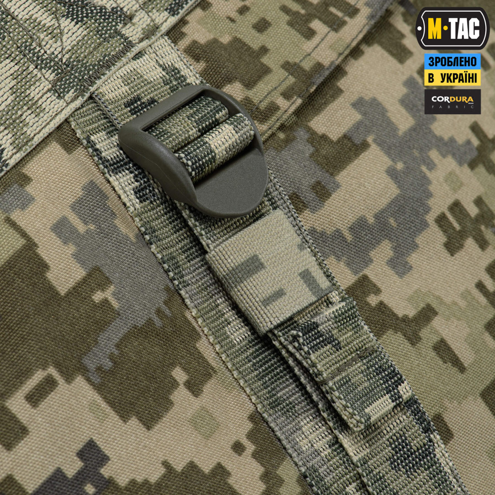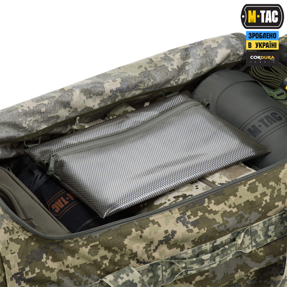 Для кращої зносостійкості, загальний каркас баула оброблений поліамідною стропою. Відділи баулу застібаються на блискавки YKK з бігунками, оснащеними паракордом Dragon Skin із термоусадкою для зручного відкривання.