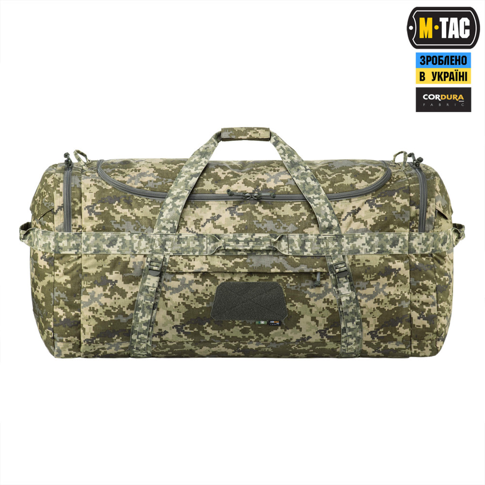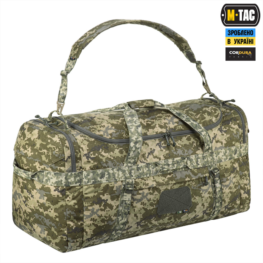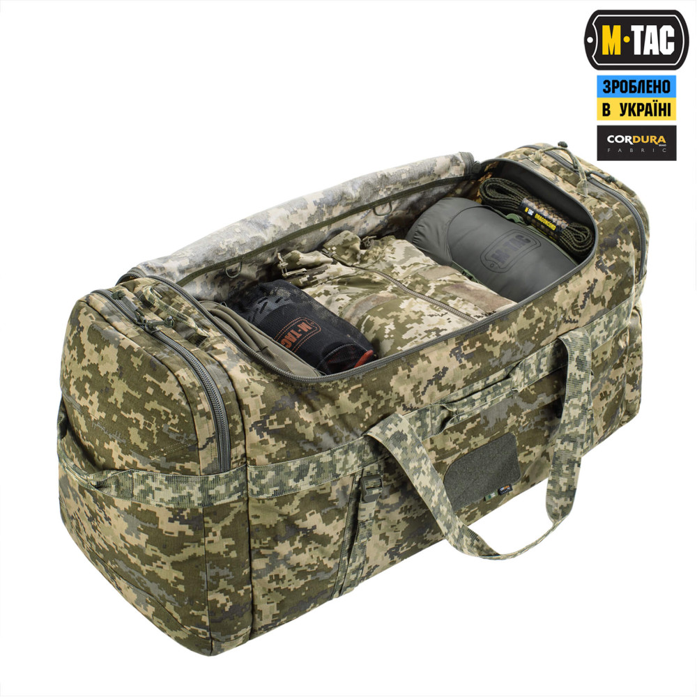Баул виготовлений із Cordura 500D – міцного, зносостійкого та довговічного матеріалу. Його додаткова обробка покриттями DWR та PU надійно захищає вміст баула від води й несприятливих погодних умов.