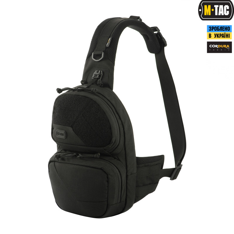 M-Tac сумка Buckler Bag Elite Black складається з двох зовнішніх кишень і відділення для прихованого носіння зброї, а також має невелику MOLLE платформу для додаткового спорядження. Сумка Buckler Bag Elite виготовлена з Cordura 500D із вставками з Cordura 1000D, і обладнана мяким демпфером на ремені для додаткового комфорту при експлуатації. Конструктори бренду M-Tac обладнали сумку зручними кишенями-органайзерами і зробили сумку сумісною з модульними вставками M-Tac.