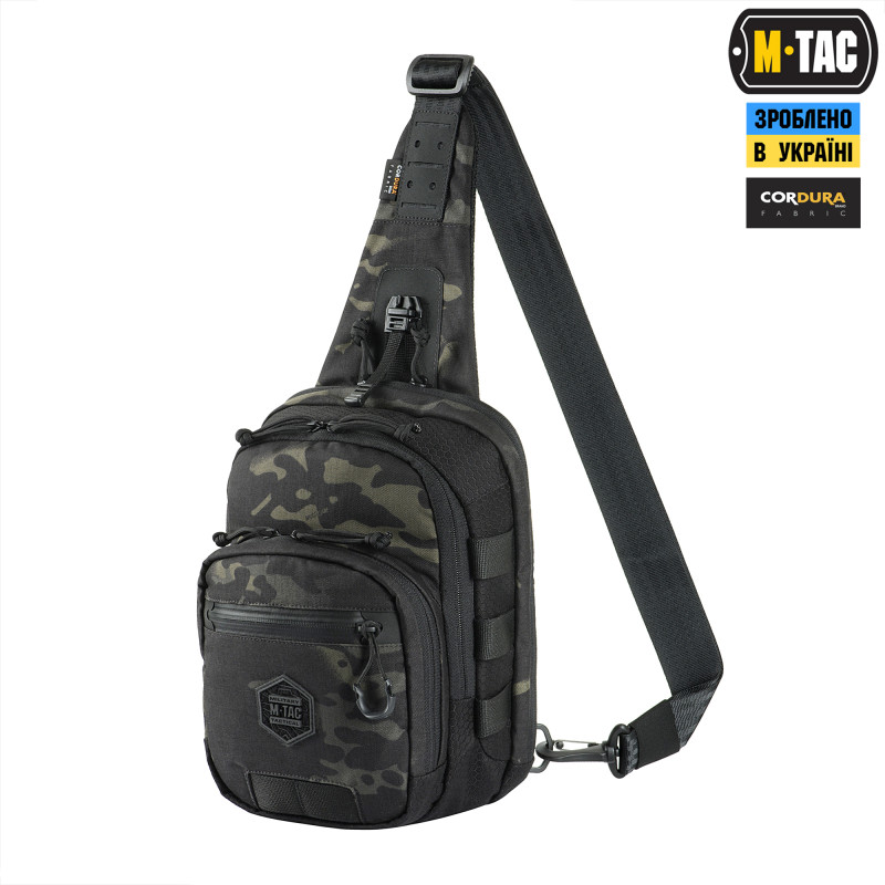 Виготовлена з Cordura 500D Multicam Black і Cordura Hex– надміцного, зносостійкого та легкого у догляді матеріалу. Блискавки та пряжки від YKK і Woojin – світових лідерів із виробництва фурнітури. Сумка оснащена однією регульованою лямкою та MOLLE інтерфейсом, який дозволяє прикріпити додаткове спорядження.