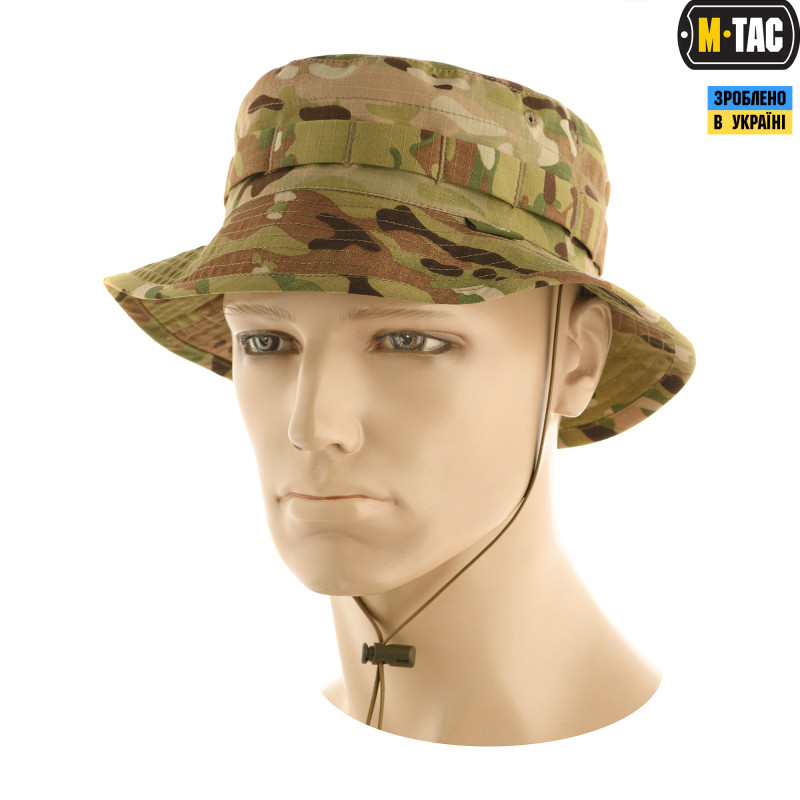Армійська панама від бренду M-Tac. Представлена у нашому магазині модель зроблена за зразком легендарної американської панами Boonie. Має крій з напівжорсткими полями. Тулія з нашитою по периметру стрічкою, яка розрахована на кріплення додаткових засобів маскування. Забезпечена спеціальним шнуром, який не дозволить панамі злетіти з голови під час сильних поривів вітру. А також має три вбудованих люверса, які гарантують відмінну вентиляцію. Панама пошита з ріпстопової тканини. З вивороту всі шви приховані. Такий спосіб обробки швів робить панаму більш комфортною при тривалому носінні, а також підвищує її стійкість до зношування.