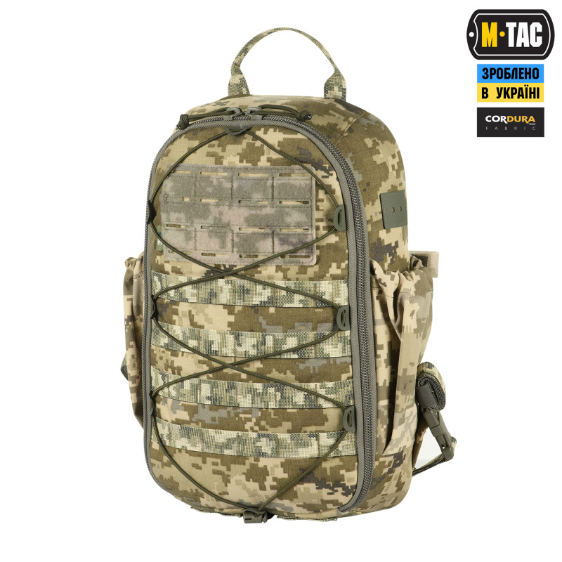 Виготовлений з Cordura 500D та Cordura 1000D – якісного й зносостійкого матеріалу, що забезпечить захист від механічних пошкоджень та тривалий термін експлуатації. Бокові кишені виготовлені з еластичного матеріалу Flex (90% нейлон, 10% еластан) та підійдуть для пляшки з водою та інших невеликих дрібничок.
