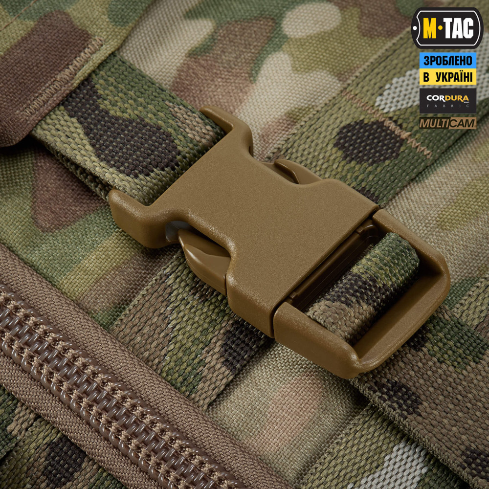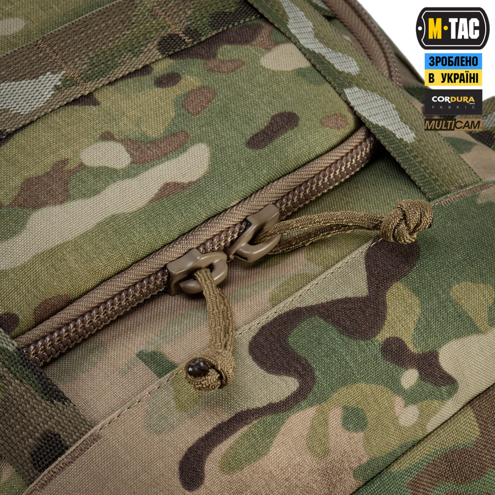 Рюкзак виготовлений з Cordura 500D та Cordura 1000D (в оригінальному патерні Multicam) – якісних та зносостійких матеріалів, що забезпечують захист від механічних пошкоджень та тривалий термін експлуатації.