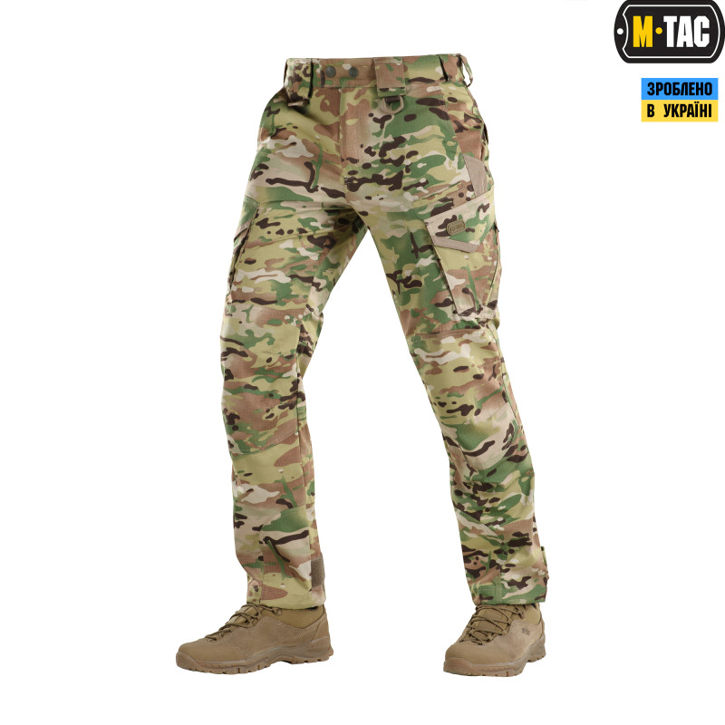 Вітчизняний бренд M-Tac намагається впроваджувати на ринок інноваційні технології. Тканина з вмістом поліестеру і бавовни приємна до тіла, добре тримає колір і відрізняється високою міцністю. Основною ідеєю при створенні цих штанів було збереження комфорту рухів, і з цим завданням дизайнери впоралися на всі сто відсотків – брюки створюють відчуття легкості, не сковують рухи і виглядають стильно і солідно. Зручні широкі кишені з посиленими вставками. Штани розраховані на носіння з ременем шириною до 5.5 сантиметрів. Спереду на петлях для ременя нашиті пряжки для кріплення чого завгодно (за допомогою карабінів). Якісна фурнітура від компанії YKK. Добре підібрані за розміром брюки настільки зручно сидять і носяться, що складається враження, ніби вдягнений у спортивні штани.
