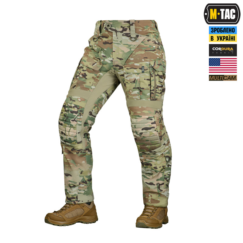 Пошиті із міцного матеріалу NYCO EXTREME (57% нейлон, 43% бавовна) від американської компанії BROOKWOOD. Дана тканина має високі показники міцності, зносостійкості та повітропроникності. Вставки з легкої тканини Flex (90% нейлон, 10% еластан) тягнуться у всіх напрямках (4-way stretch) та гарантують комфорт при активній експлуатації. В області колін дизайнери бренду використали Cordura 500D зі стаціонарно простроченими вставками з EVA-піни товщиною 2-4 мм, що забезпечить ефективний захист колінних суглобів від ударів та механічних пошкоджень. Дана модель додатково комплектується наколінниками.