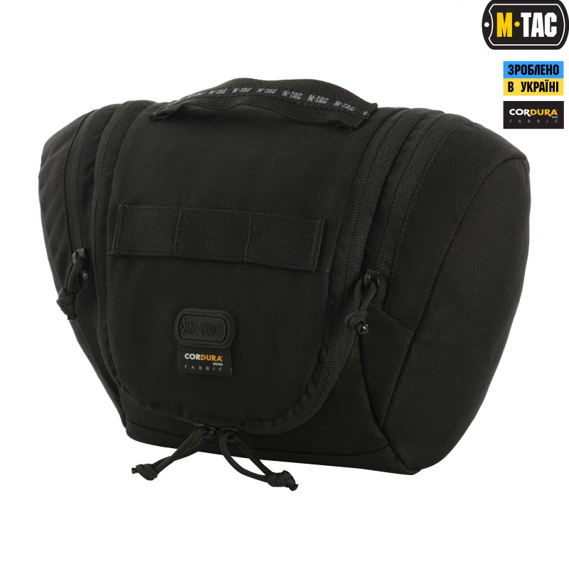 При створенні сумки M-Tac для туалетного приладдя малися на меті кілька цілей. Дана сумка призначена для зберігання різних засобів гігієни та інших дрібниць. Дійсно, це зручний і практичний аксесуар, що дозволяє компактно зберігати бритву, зубну щітку, пасти, креми, шампуні і різні дрібниці. У складеному стані сумка компактна і не займає багато місця, але водночас вона може вмістити в собі все туалетне приладдя, яке може знадобитися солдату. За побажанням покупців в Gen.II форму несесера зробили більш зручною для використання в підвішеному стані. Бортик вище, що добре утримує навіть великі флакони. Бічні окремі кишені дозволяють зручніше організувати речі в несесері