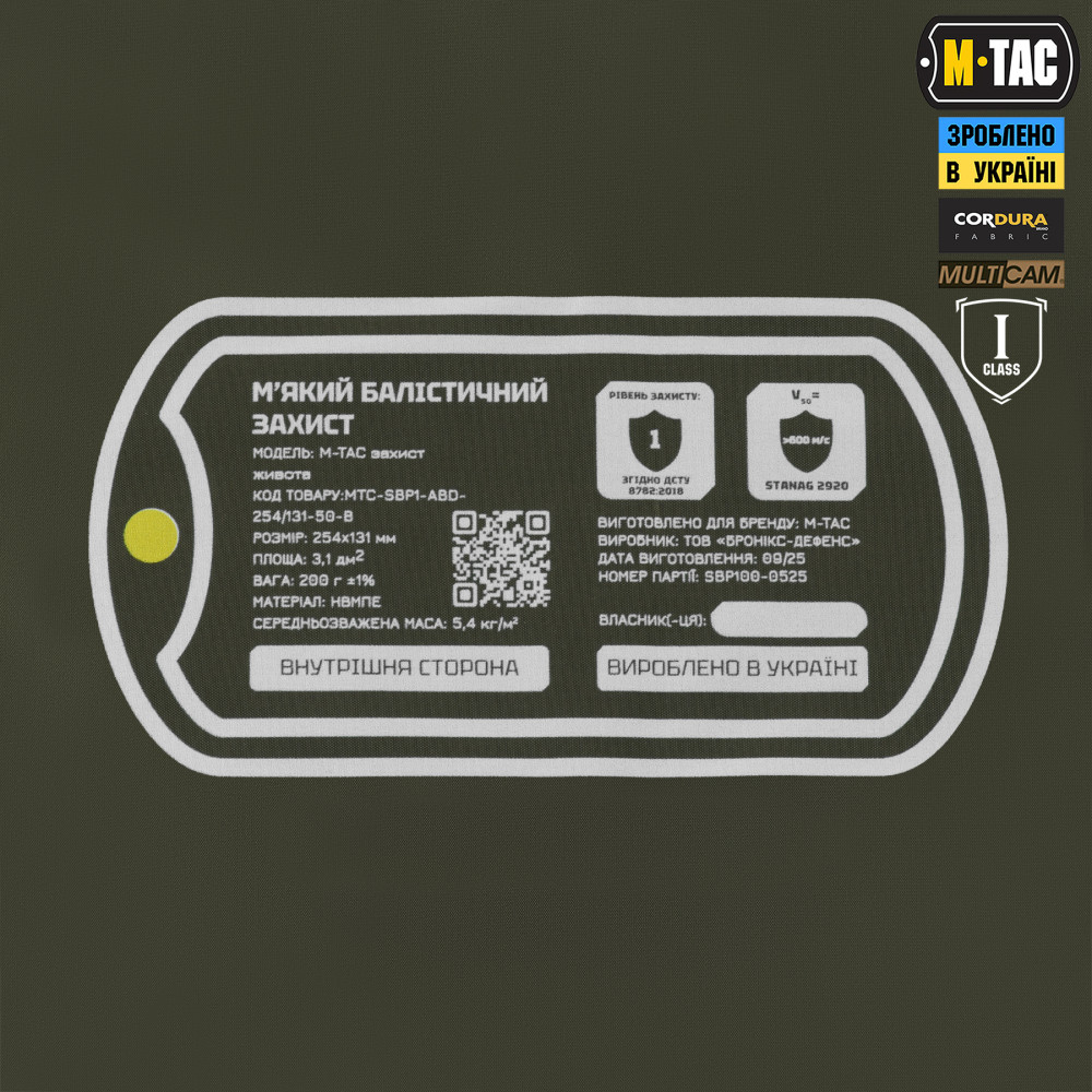 Також, захист живота комплектується балістичним пакетом 1-го класу від українського виробника професійного бронезахисту BRONYX.