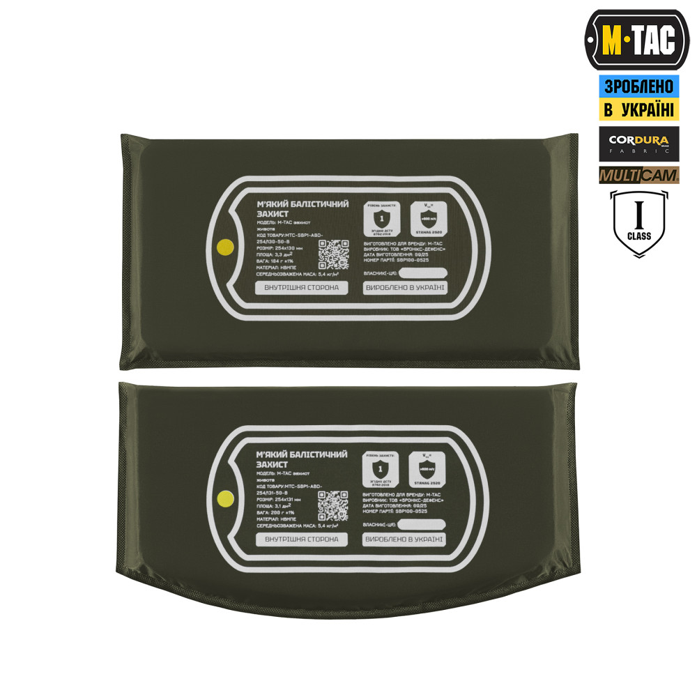 М’який балістичний пакет виготовлений з надвисокомолекулярного поліетилену та відповідає STANAG 2920 з показником протиуламкової стійкості V-50 близько 600+ м/с.